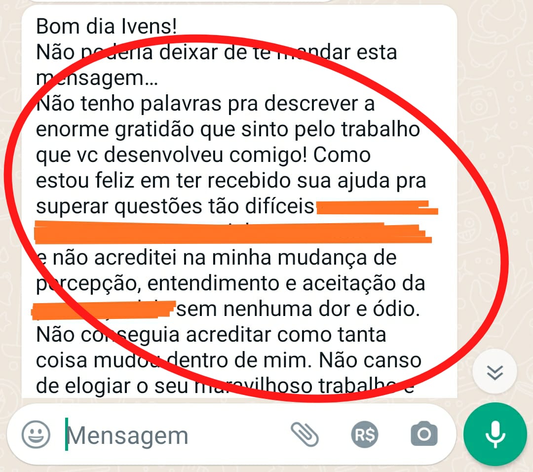 “Sou paciente de Ivens. Cheguei com muita insegurança, o que me gerava muita ansiedade e fazia perder o controle das emoções. Hoje, tenho aprendido a lidar com a ansiedade o que me deixa mais calma em situações de estresse. Já melhorei muito através do acompanhamento que é conduzido pelo psicológico Ivens. Gratidão!”